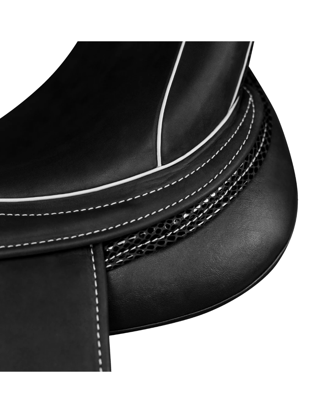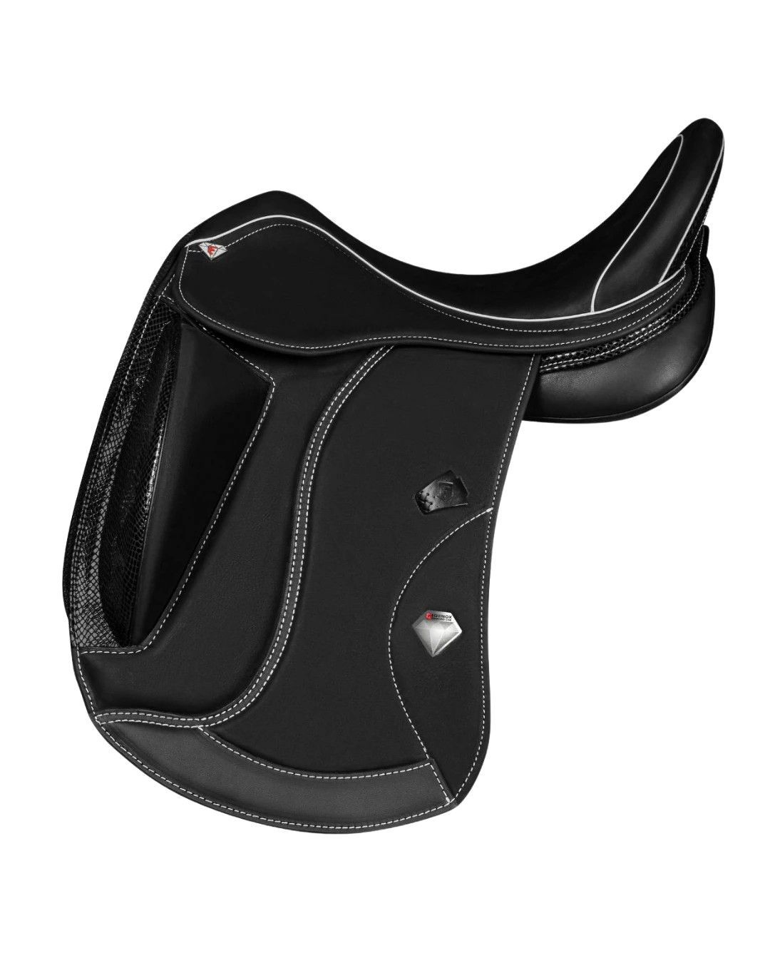 Der Sattel EQ S6.3 Diamond ist ein exklusiver Dressursattel, der klassische Eleganz mit modernen Technologien verbindet und maximalen Komfort sowie Präzision bietet. Er richtet sich an anspruchsvolle Reiter, die perfekte Passform, Unterstützung und volle Kontrolle über jede Bewegung des Pferdes erwarten. Der tiefe Sitz sorgt für Stabilität, hilft die optimale Position zu halten und ermöglicht subtile, aber effektive Kommunikation mit dem Pferd, was für präzise Dressur entscheidend ist.