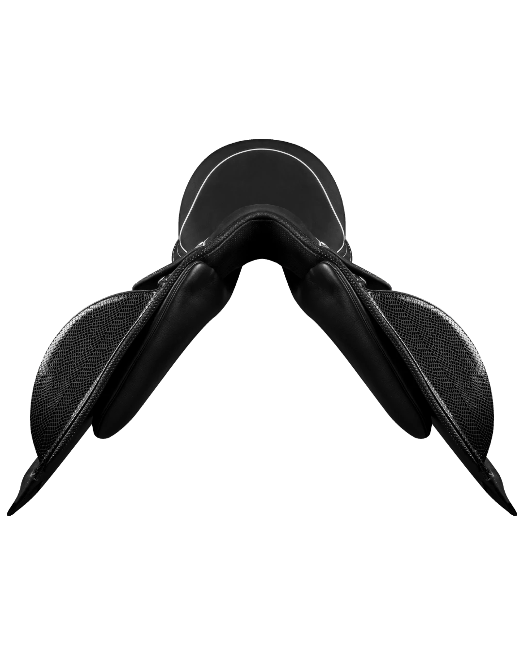 Breite, anatomisch geformte Paneele verteilen den Druck gleichmäßig auf dem Rücken des Pferdes, eliminieren Druckpunkte und gewährleisten vollständigen Komfort sowie Bewegungsfreiheit. Dies erlaubt dem Pferd flüssige und effektive Ausführung von Dressurlektionen. Geformte Kniepauschen unterstützen die korrekte Beinposition und helfen dem Reiter, eine stabile und bequeme Position zu halten. Die Wahl der Kissenfüllung – zwischen synthetischer Watte und natürlicher Wolle – ermöglicht eine individuelle Anpassung des Sattels an die Anatomie des Pferdes, erhöht dessen Komfort und Bewegungseffizienz.