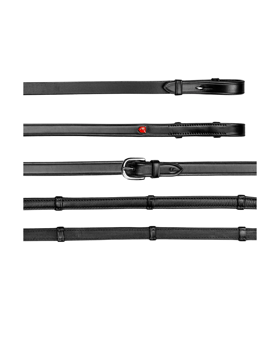 Die Equinox Leder-Gummizügel sind aus italienischem Leder gefertigt und mit rutschfestem, weichem Gummi unterlegt, was einen stabilen und sicheren Griff gewährleistet. Lederstopper verhindern, dass die Zügel aus der Hand rutschen.