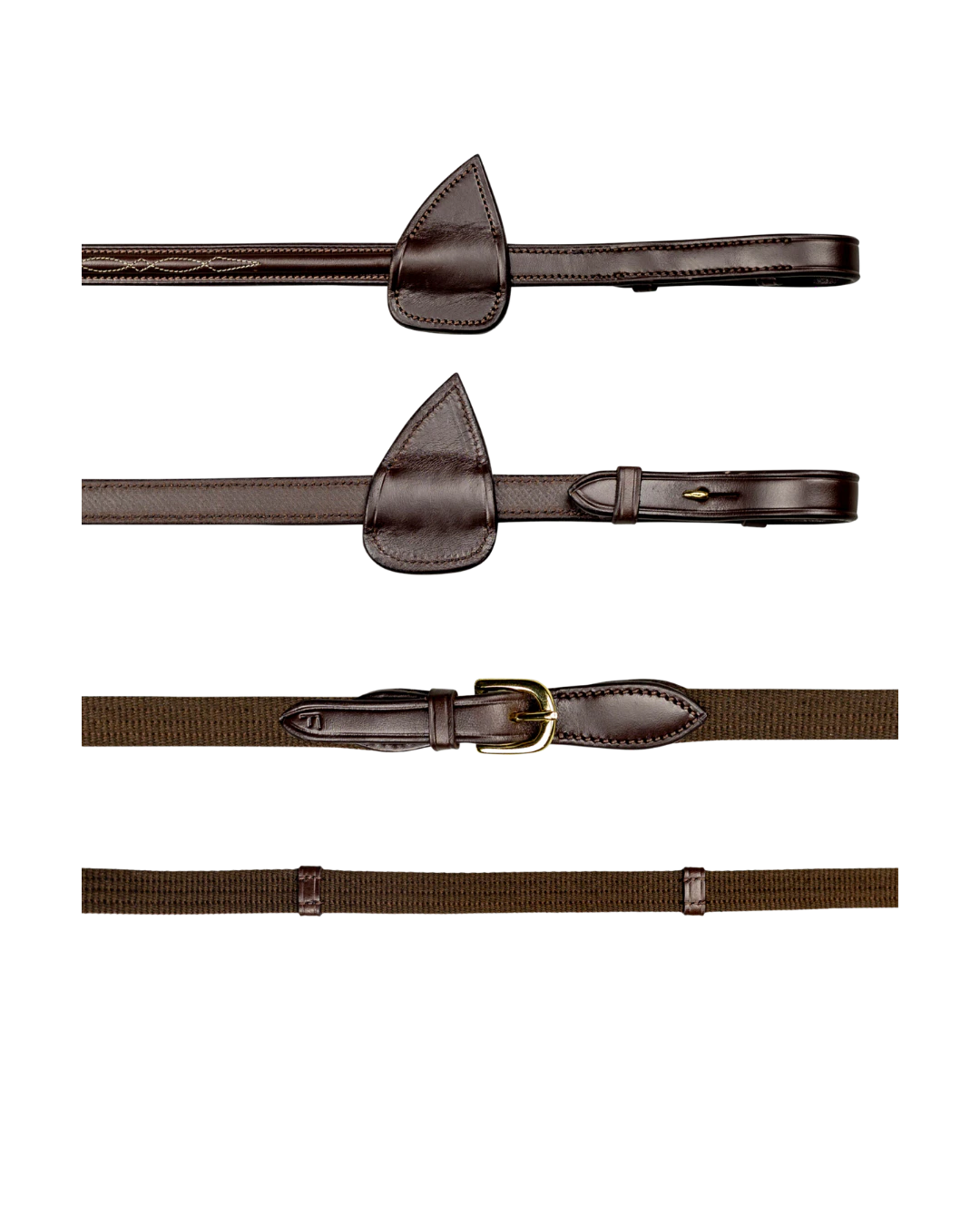 Leder-Gurtzügel mit schön gesticktem Muster, passend zu einem klassischen Zaumzeug, gefertigt aus italienischem Leder mit Stoppern.
