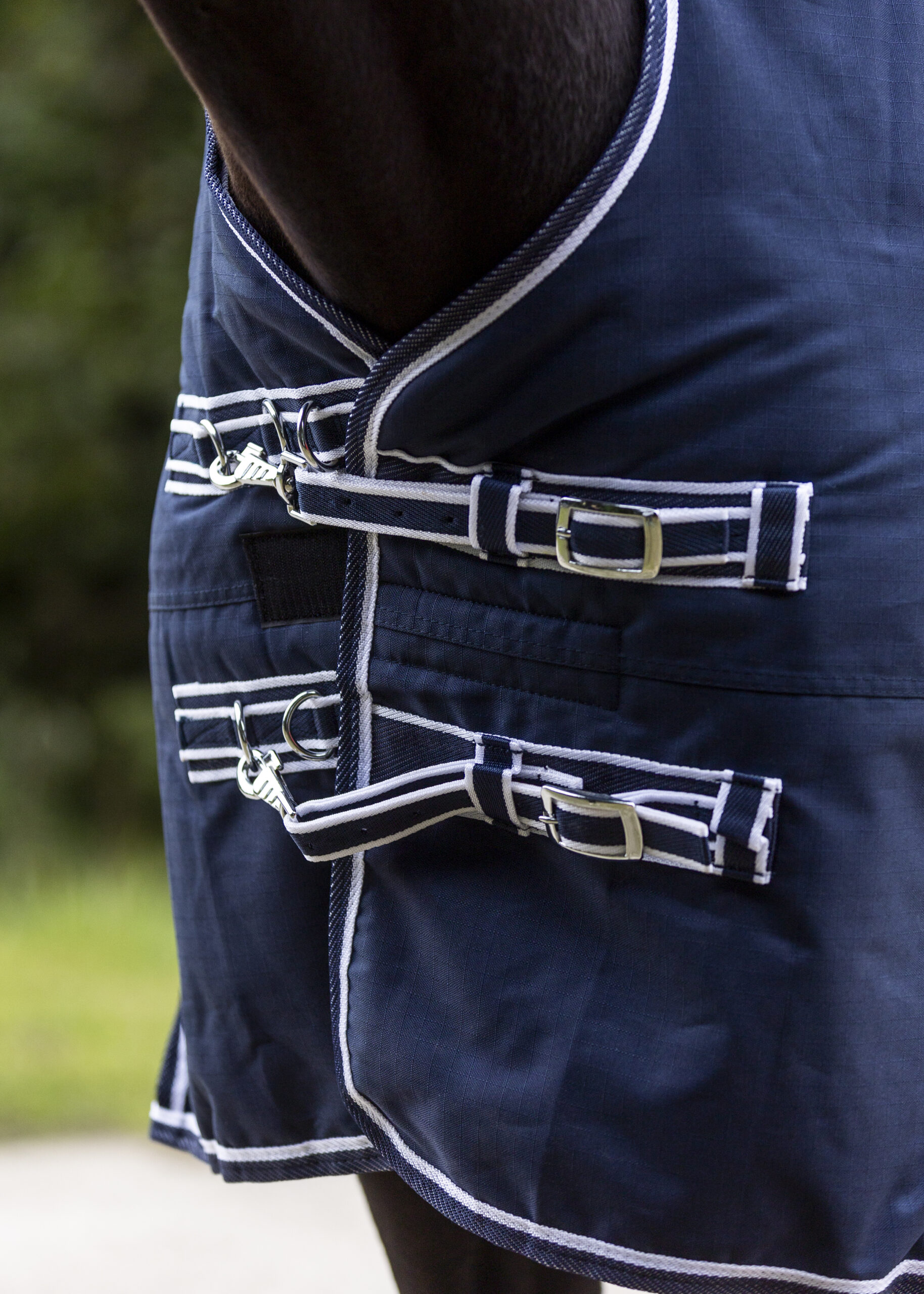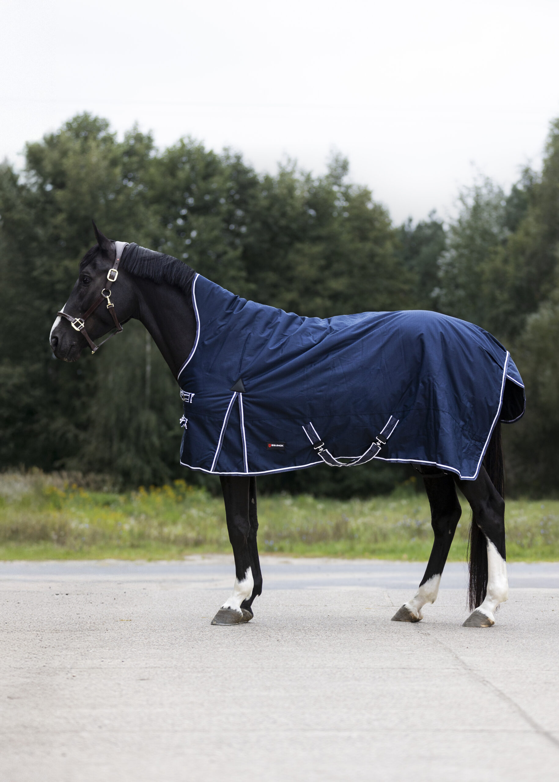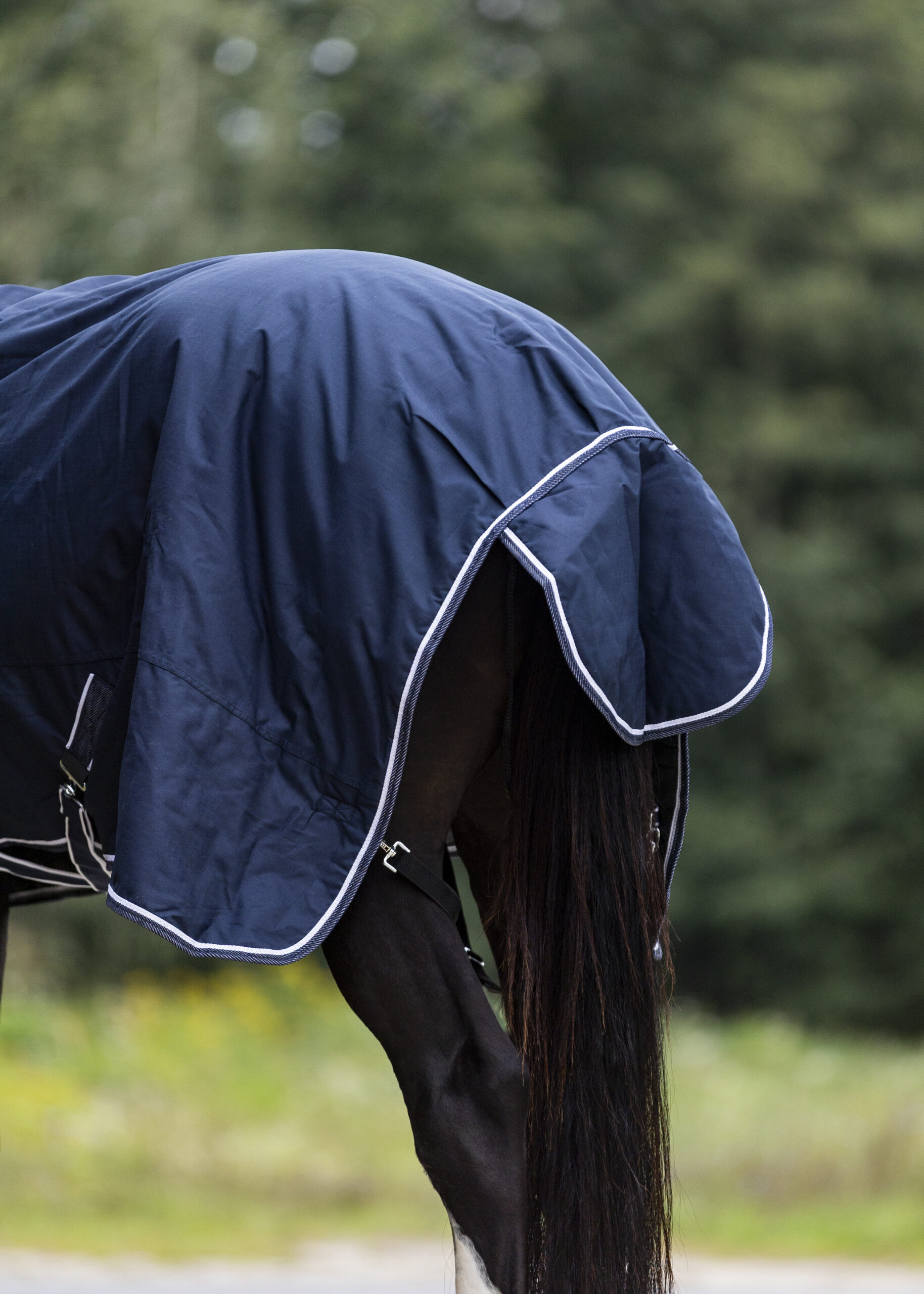 Die Equinox Outdoordecke – eine wasserdichte, winddichte und atmungsaktive Pferdedecke, die auf dem Paddock vor Regen, Wind und Schnee schützt. Sie besteht aus strapazierfähigen Materialien mit zusätzlicher wärmender Füllung und ist mit einem anatomischen Schnitt, verlängertem Halsbereich – besonders wichtig für geschorene Pferde –, Schulterfalten, Kreuzgurten, einer Schweifklappe sowie komfortablen Verschlüssen ausgestattet. Sie sorgt für Bewegungsfreiheit sowie für Wärme und Trockenheit.