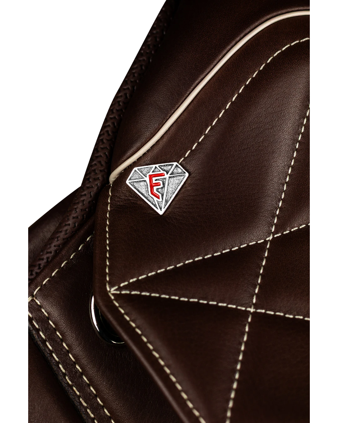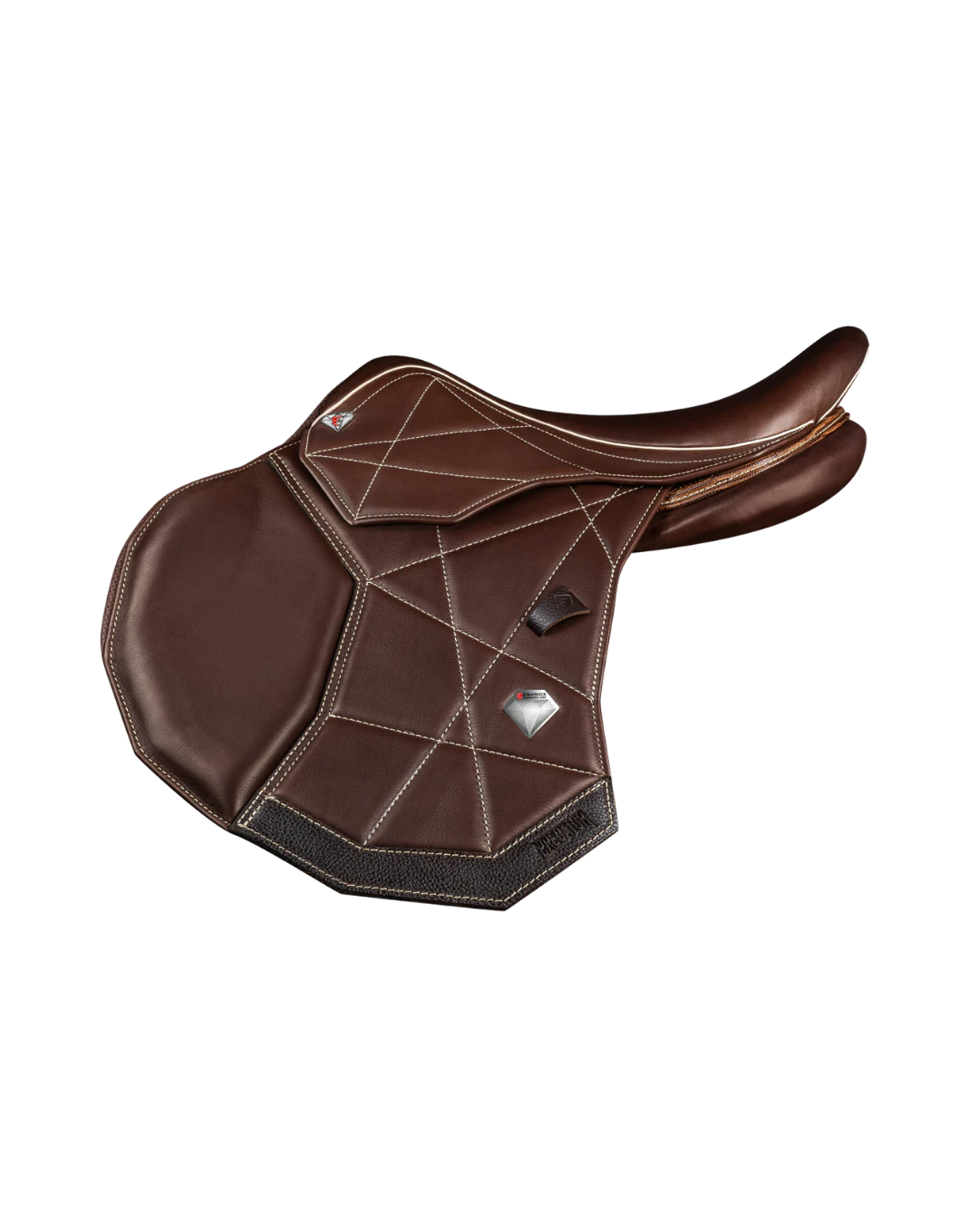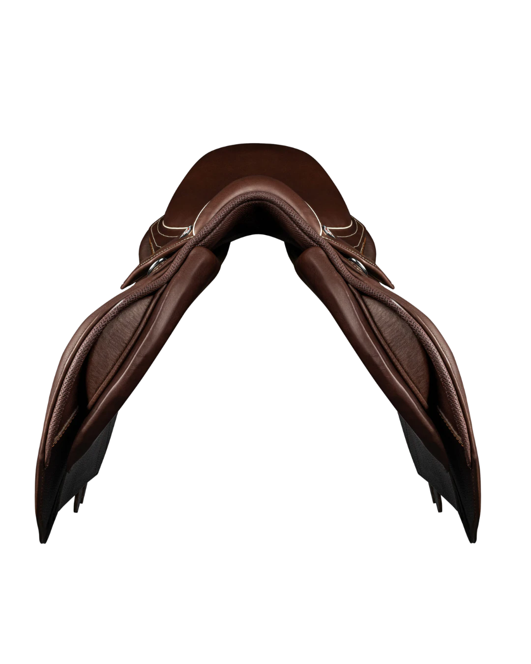 Dank breiter, anatomisch geformter Panels verteilt der Sattel den Druck gleichmäßig auf dem Pferderücken, eliminiert Druckpunkte und ermöglicht dem Pferd volle Bewegungsfreiheit. Diese Konstruktion fördert den Komfort des Pferdes und unterstützt seine natürlichen Sprungfähigkeiten. Geformte Knie- und Wadenblöcke stabilisieren die Beine des Reiters, verbessern Gleichgewicht und Sicherheit im Sattel. Die Wahl der Polsterfüllung – zwischen synthetischer Watte und natürlicher Wolle – erlaubt eine perfekte Anpassung des Sattels an die individuellen Bedürfnisse von Pferd und Reiter und erhöht Reitkomfort und Nutzungserlebnis.